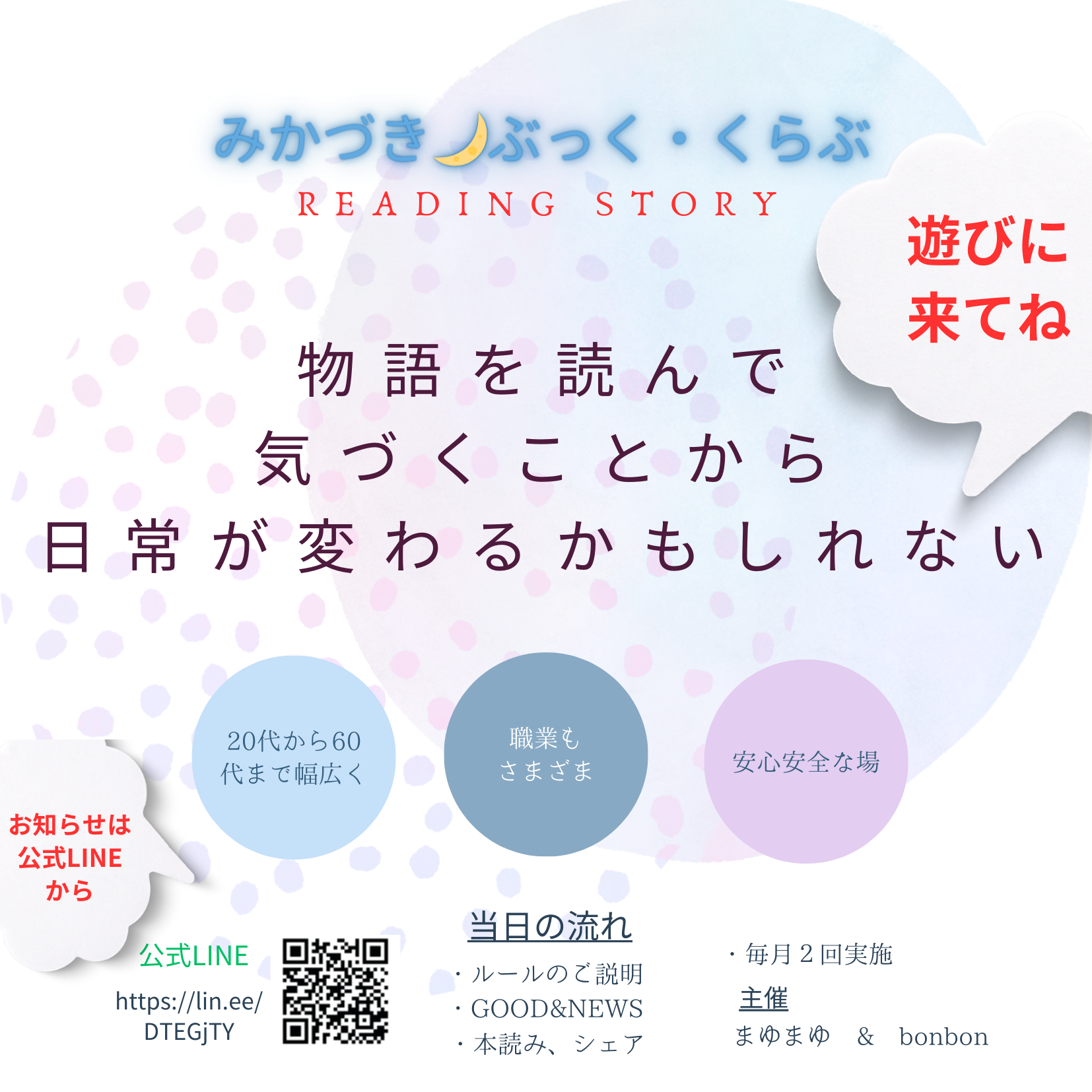 次回絶賛参加者募集中、ぜひ、初めての方も来てみてくださいね。怖くないよ。安心安全な場ですよ。